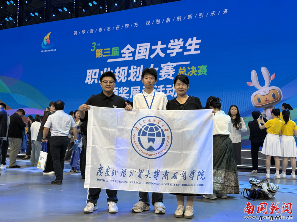 本网讯4月22日至25日,第三届全国大学生职业规划大赛全国总决赛在天津举行,教育部党组书记、部长怀进鹏作视频讲话。本次大赛由教育部与天津市人民政府联合主办,吸引了来自2833所高校的2055万名学生参赛,是全国规模最大、含金量最高的大学生职业规划顶级赛事。我校计算机学院隆宇杰同学凭借优异表现斩获全国总决赛铜奖,创下我校在该项赛事中的历史最好成绩,为学校三十周年校庆献上一份青春贺礼。赛场合影留念自赛事启动以来,隆宇杰同学历经校赛、省赛、国赛和排位赛等层层选拔,以广东省赛金奖晋级全国总决赛,与来自清华大学、浙江大学等国内顶尖高校的优秀学子同台竞技,最终斩获全国总决赛铜奖,创下我校在该项赛事中的历史最好成绩。大赛以“筑梦青春志在四方,规划启航职引未来”为主题,是目前国内规模最大、覆盖面最广、含金量最高的大学生职业规划赛事。隆宇杰同学凭借扎实的专业能力与清晰的职业规划脱颖而出,充分展现了我校学子的综合素养与竞技实力。此次获奖,是学生个人不懈奋斗的成果,更是学校坚持高质量人才培养、扎实推进就业育人工作的生动体现。(文/隆宇杰、徐燕萍 图/杜岚清 通讯员/方思予)