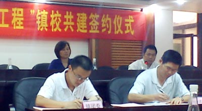本网讯 近日,白云区“镇村清洁绿化工程”镇校共建签约仪式在钟落潭镇政府举行。学生处副处长、团委书记刘伟炼应邀参加了仪式,并代表学院签约。