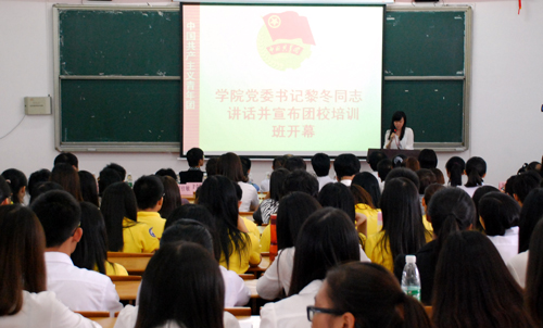 本网讯(记者 林丹 沙金烨 实习记者 吴蓓蓓 邓贵芳)为了更系统学习理论和提高团务素质,培训一支忠诚党和团的事业的高素质团干部队伍,10月18日下午,我院在教学楼C301、C302举行业余团校开班仪式暨关注“90后”论坛第三讲。党委书记黎冬出席了仪式。