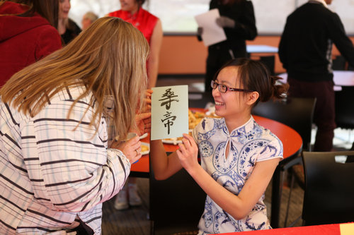 学习之余,他们也非常喜欢参与各类活动,他们结伴到奥马哈的街头跳舞,给当地小学生教书法,参加国际学生派对和应届毕业生招聘会等等。