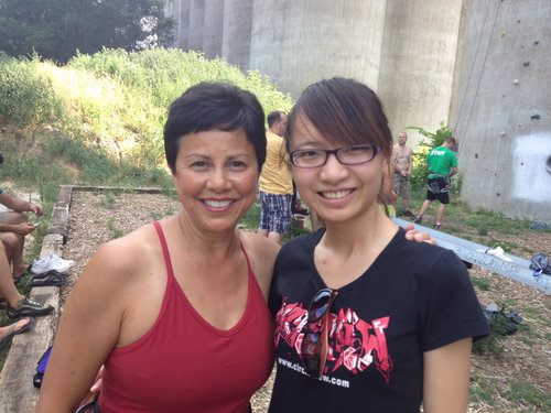 郑一楚(右)和贝佛市市长一起攀岩