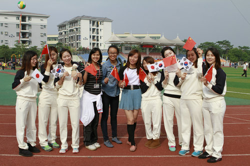 在校运会上,日韩交换生与中文系学生一起参加校运会开幕式表演,尝试自己未曾体验过的踏齐步训练,感受不一样的中国学生运动会,还收获了一份纯真的友谊。