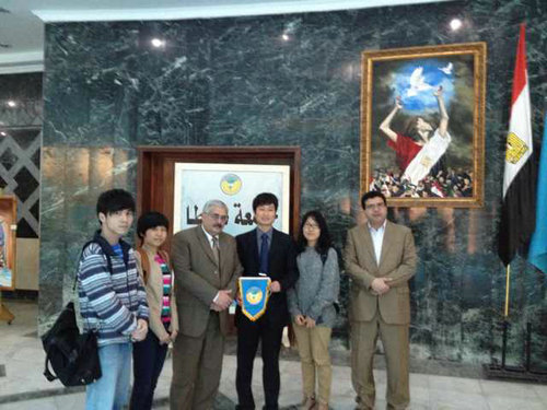 陈超业老师(中)、3位同学与坦塔大学文学院院长及阿语中心主任合影