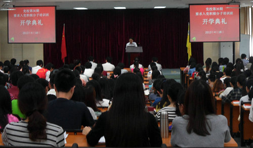 开学典礼在庄严的国歌声中拉开帷幕。麦培年对近年来广外和我校在培养和发展党员的基本情况进行了通报。对于办好党校,他提出要按照“控制总量、优化结构、提高质量、发挥作用”的总要求,积极探索党支部建设的有效形式,完善各种党员发展、培养机制。同时,他对新一批入党积极分子提出三点期望:志存高远,始终坚持共产主义的理想信念;勇于担当,自觉肩负不辱使命的时代责任;锻炼才干,不断提高服务社会的本领能力。