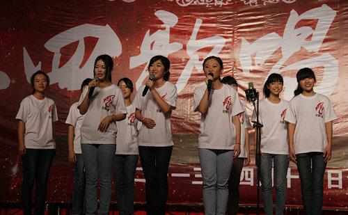 本网讯(记者 方冰冰)4月18日晚,学校在商业街舞台举行了主题为“擎活力风帆,唱青春乐章”的2013年“五四”歌唱比赛。