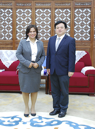 本网讯 5月23日,菲律宾远东大学文学科学研究院院长Myrna一行首次访问我校。副校长赖志立在行政楼贵宾厅会见了来访客人。