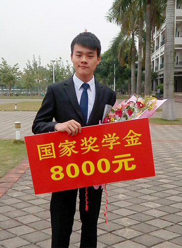 他的脸上总是洋溢着自信的笑容,他的笑声总能感染身边的人;他是国家奖学金获得者,最近又被评为“优秀毕业生”和“优秀学士”;招聘会上,他顺利地拿到联合建设国际有限公司录用通知书,毕业后将赴坦桑尼亚达累斯萨拉姆工作。他是英语系2009级商务英语1班的陈剑豪。