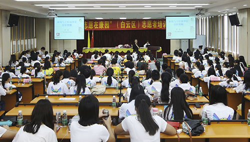 本网讯(记者 何泽茹)6月20日下午,白云区“志愿者在康园”助残志愿者技能培训班在我校学术报告厅C201开班。广州志愿者学院志愿者工作部副部长李霞、教师李小娜,阿福社会工作服务社负责人潘炽标、冯炳初、小仪出席。曦阳服务队、广东警官学院爱心社、广东机电职业技术学院青年志愿者协会代表以及我校志愿者代表参加了培训。