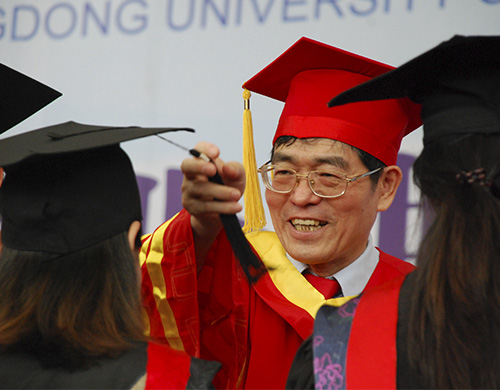 徐真华为毕业生拨穗(刘伊诗 摄)
