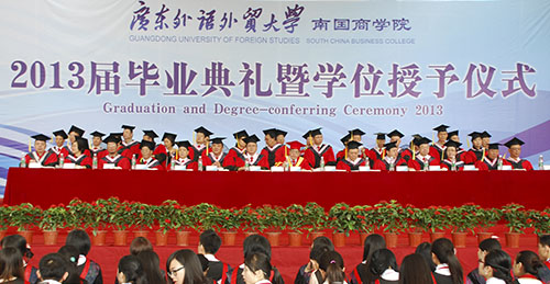 受礼仪式后,毕业典礼在广东外语外贸大学校歌《凤鸣岭南》的歌声中结束。