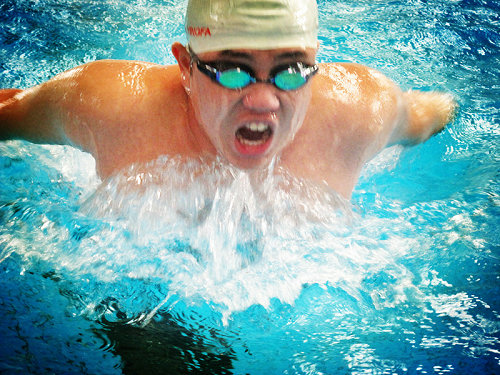 在男子200米蝶泳的激烈争夺中,我校选手叶沐青同学勇于拼搏,发挥出色,获得冠军。