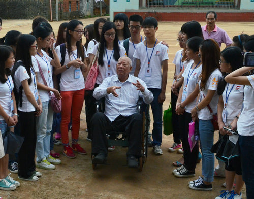 参观潭葛村后,在保伯家中,队员们在保伯挂满荣誉奖章的书房听他讲述了他从18岁加入共产党参加革命的经历。谈及教育,保伯从他小时候旁听私塾的经历谈到当下实行“科教兴国”的重要性,他认为,应当重视教育,这是国家和民族发展的重要前提。