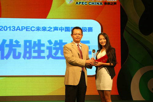 本网讯(记者 江颖诗)近日,我校学生潘熳琳赴北京参加“2013年度APEC未来之声”中国区选拔活动终极赛。潘熳琳作为全国12强选手之一,与来自北京大学等知名高校的本科生、硕士生和博士生同场竞技,最终斩获“2013年度APEC未来之声”中国区选拔终极赛第四名,并将与其他五强选手组成中国“APEC未来之声”代表团10月赴印尼,参加在巴厘岛举办的APEC峰会系列活动。
