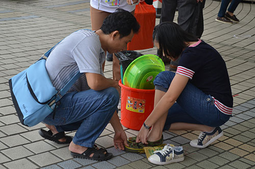 试穿一下鞋子,明天我要准备军训了(李嘉慧 摄)