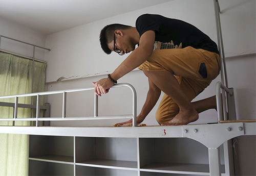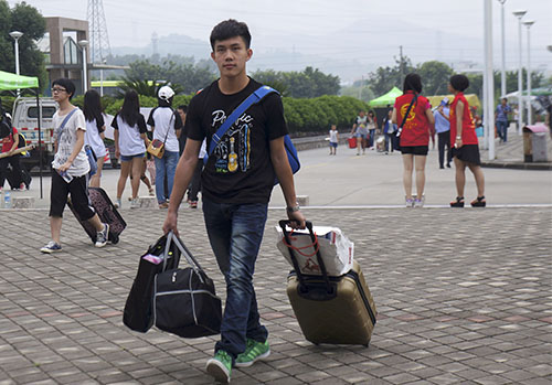 我校今年新增设了俄语、财务管理以及翻译专业。来自潮汕地区的俄语专业陈威淦也是一个人来报到的。出发之前,他在网上查阅了路线图。尽管家人说要送一送,但他坚持自己一个人提着大包小包的行李到地方汽车站,登上到天河客运站的汽车,然后通过转乘地铁、公交来到学校。提及专业学习,他希望自己能够在大一的时候打好基础,将来四年之后成为一个精通俄语的专业型人才。