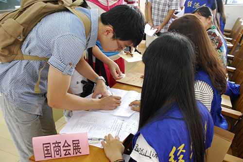 在各系报到处,报到、注册、安排住宿等的“一条龙”报到流程明确简洁地展示出来,如国际工商管理系就将新生报到的步骤以海报形式详细列出,让新生一目了然。2013级会计专业的龙同学对记者说:“报到的流程明了简单,完全不需要家长的帮忙,自己就能独立完成了。”