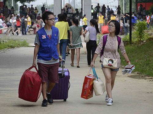 各系精心布置 新生独立办理报到手续
