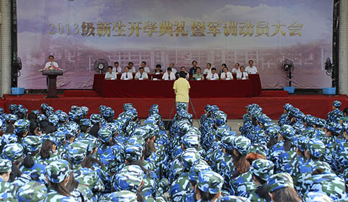 本网讯(记者 何泽茹 张燕霞)9月8日上午,我校在商业街举行2013级新生开学典礼暨军训动员大会。2013级新生的“大学第一课”拉开帷幕。