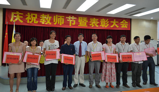 本网讯(记者 张燕霞 吴蓓蓓)9月10日,适逢第29个教师节,我校在学术报告厅C201召开庆祝教师节暨表彰大会。校长徐真华,党委书记黎冬,常务副校长袁长青,副校长杨永强、赖志立、熊匡汉、余庆安出席大会。会议由赖志立主持。全体教职工参加了大会。