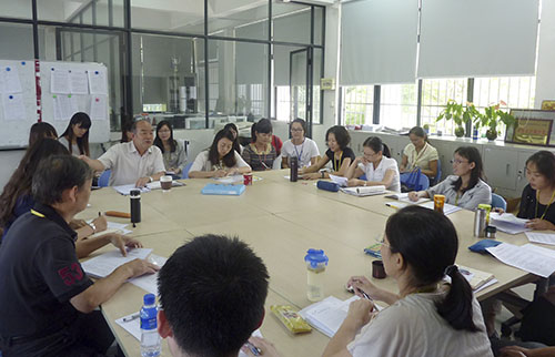 本网讯 9月26日下午,东方语言文化系全体日语专业教师、外教及行政管理人员和辅导员在F201召开日语教学工作会议。会议还邀请了正在我校讲学的日本川崎外语商务学院访问学者金子真弓老师参加。会议全程用日语进行交流。东语系创新教学实践同声传译小组派出的6名同声传译员进行现场翻译。