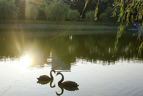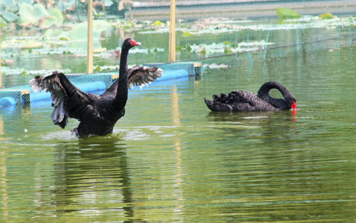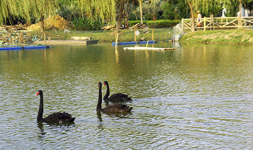 【编者按】9月底,我们迎来了3个可爱的“小伙伴”——黑天鹅。看!它们时而挺脖昂首,神气如同将军;时而曲颈低头,闲雅胜似仙子。它们用红脚蹼划动着那碧绿的湖水;它们伸展着宽阔的羽翼,引翅拍水行进时,犹如一叶叶扁舟。