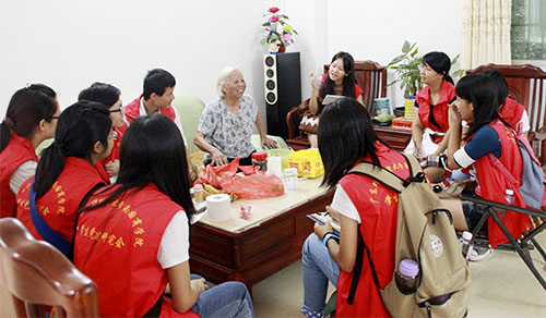 同学们带着油和米等慰问品分别探望了9位老党员。老党员们对同学们的到来感到很开心。在老党员家里,同学们热情地和老人们聊起了家常。期间,老人亲切的询问同学们的学习生活情况,并以自身的经历向同学们讲述老一辈共产党员艰苦奋斗的历程。最后,同学们还和老人们手拉手一起唱起了红歌。