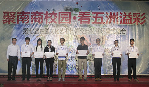 在本届校园文化艺术节中,共有3个项目获“优秀项目奖”和8个单位分获“优秀组织奖”一二三等奖。黎冬和袁长青为获奖单位颁奖。