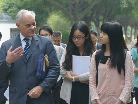 会后,胡里奥·法拉利一行参观了我校校园。
