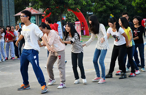 活动分两场进行,共计33个新生班级1000多人参加。活动通过“链接加速”、“团团抱”、“疯狂的设计”、“人椅”、“口口相传”、“捕鱼”、“解手链”等趣味拓展游戏,将心理素质与综合素质的培养融入拓展游戏中,增强了2013级同学的沟通合作意识、组织协调能力与解决问题的能力,增强了班级的凝聚力与向心力,使同学们从活动中体会到沟通、信任、协作的重要性,在素拓过程中实现自我突破、团队共赢。