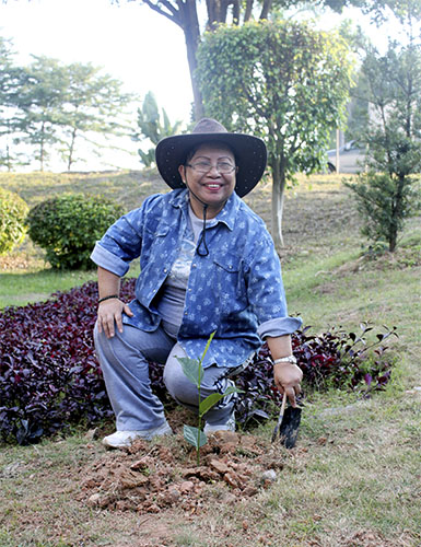 谈到对树木的感情时,Faith说:“树是我们的朋友。我喜欢种树,而且种树也是一种身体锻炼。”栽种过程中,Faith还分享了她在家乡种树的经历,并且认为种树不单只是令人享受的过程,某程度上还是一种对未来的希望。Faith用一句英语谚语总结了她多年来的种树心得:“If you want to be famous,write a book. But if you want to be remembered,plant a tree.”(如果你想出名,可以写一本书。不过如果你想要让别人记住,种一颗树吧。)