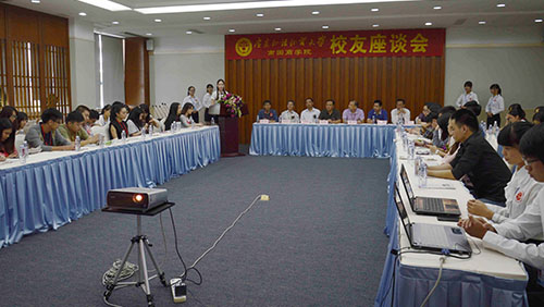 一段反映学校的校园新景色的视频拉开了座谈会的序幕。黎冬为活动致辞。他对到场的各位校友的归来表示热烈欢迎,并介绍了学校最近几年的发展状况。黎冬表示,校友是母校的名片,是母校在社会公众中最直观的形象品牌,看到校友的成果,母校感到欣慰。他说:“母校是校友们疲惫时可以憩息的家,是校友们可以依靠的港湾,欢迎校友们常回家看看。”