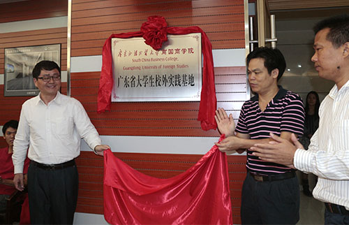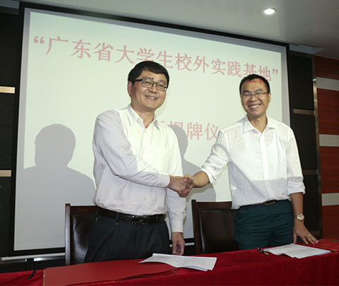 本网讯 11月1日,由广东外语外贸大学南国商学院和展滔科技电子商务产业园联合举办的广东省大学生校外实践基地签约挂牌仪式在深圳龙华新区民治街道举行。我校常务副校长袁长青、深圳龙华新区民治街道办主任陈小青、深圳民治商会彭会长、产业园区吴宇铭董事长出席挂牌仪式。