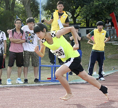 光脚,只为感受奔跑的快乐(梁宝瑜 摄)