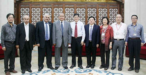 本网讯 4月10日上午,埃及坦塔大学校长Abdel Hakim Abdel Khalik Khali一行访问我校。校长徐真华在行政楼贵宾厅接待了来宾。双方就教师互访、学生交换等议题进行了交流。副校长赖志立、王心洁参加了交流会。