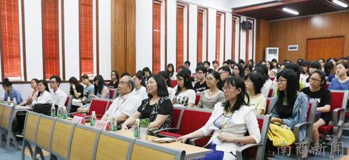 本网讯 近日,中国人民大学外国语学院张威教授和北京第二外国语学院王怡教授来校交流讲学。他们分别以“关于日语复合动词”和“同声传译技巧”为题举办了2场讲座,东方语言文化学院师生聆听了讲座。
