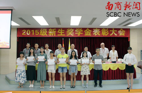 本网讯(实习记者 叶斓 林琳)10月22日下午,学校在C201学术报告厅举行2015级新生奖学金表彰大会。党委书记黎冬出席会议。学生处、各院系负责人、新生辅导员和新生代表参加会议。