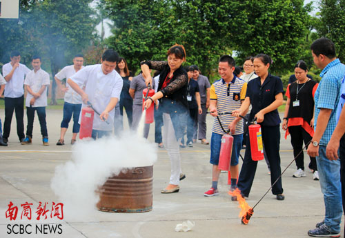 后勤部门工作人员进行灭火实操 (方锦仪 摄)