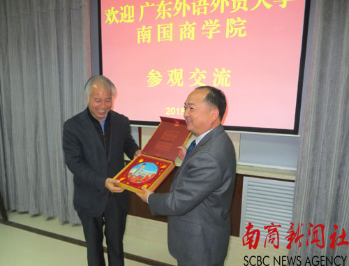 与西安外事学院董事长互换礼物