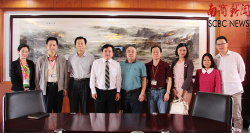 赖志立对客人的到来表示热烈的欢迎。他说,南商与广州商学院的交情源远流长,两校的办学有许多相通的地方。南商有26个本科专业,分属文学、经济学、管理学、工学等4个学科门类,其中有10个外语专业,涵盖8个语种。随后,赖志立介绍学校董事会领导下的校长负责制的基本框架、高级人才引进、干部任免、机构设置、岗位职责、人事管理等情况。