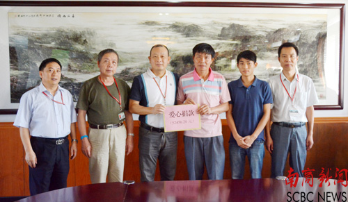黎冬书记将善款交到王琼英父亲(右三)的手中 (刘阳 摄)