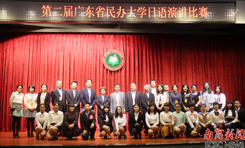 本次比赛由中国日语教学研究会华南分会、广东省民办本科高校日语教学研究联合会主办,日本驻广州领事馆国金领事、中国日语教学研究会华南分会会长陈多友为首的省内日语界专家学者、企业代表等担任大赛评委。