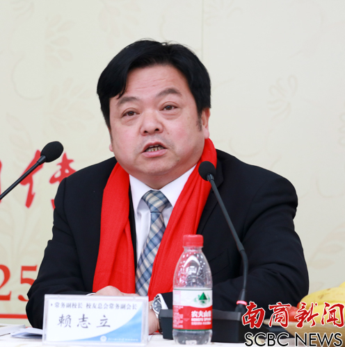 赖志立在致辞中向与会校友介绍了学校一年来的发展情况。他说,学校在坚持国际化特色办学,不断提高教育质量的道路上孜孜不倦地探索和追求,在人才培养、科学研究、服务社会、文化的传承与创新等方面取得了很多新的成绩,学校的“外语特色”进一步得到加强。此外,学校的校友工作也得到了校友们热切的关注和大力的支持,取得了长足的进步。赖志立表示,校友会重友不重惠,重情不重利。母校与校友是血与水的关系,是母与子的关系,校友工作是一项长期而细致的投入工作,学校校友总会一定会一如继往地加强与校友的联系、沟通与服务,把各地方校友会建设成为学校与校友联系的桥梁与纽带。同时,他希望各地校友会团结更多的校友,共同关注母校,积极为母校发展及做好校友工作出谋划策,为学校建设做出贡献。