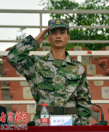 军训团团长陆振华希望同学们严格遵守军训纪律 (刘阳 摄)