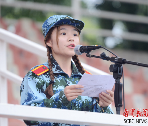 来自2015级国际经济与金融学院的张诗瑶代表2015级学生发言。她认为通过军训能够学习军人的好思想、好作风、好传统;通过军训能够学会与同学们加强交流与合作,培养感情、齐心协力、共度难关。“宝剑锋从磨砺出,梅花香自苦寒来。坐在教室里是无法体会经历磨练后的幸福,也无法享受克服困难后取得成绩的快乐。”她表示,将和所有同学们一起,听从指挥,严格遵守纪律和作息时间,以军人的标准来严格要求自己。