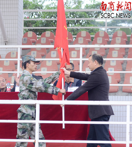 黎冬书记向军训团授旗 (陈锴进 摄)
