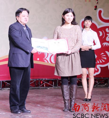 本网讯 1月5日晚,2006级日语专业校友郑寅珑返校,在商业街与大一学生分享自己的留学经历。此次讲座以“乘着中国文化的翅膀奔向世界”为主题。常务副校长、校友总会副会长赖志立为郑寅珑颁发校友讲师聘书。