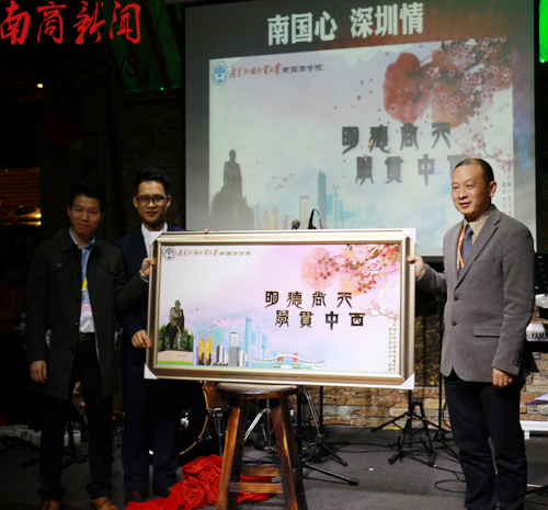 深圳校友会作为学校第一个成立的地方校友会,走过4载春秋,为联络南商校友情谊、促进深圳人才发展做出了积极的贡献。黎冬在致辞中介绍了学校如今的变化和发展,并畅谈了他与会的3点感受:第一,感受到了友谊的力量。校友之间基于共同的求学背景和文化熏陶,有着共同的精神传承和事业追求,相互沟通、相互携助,共同促进彼此事业成功,这是浓浓的同学情谊,深深的赤子情怀;第二,看到了校友快速的成长。南商校友尚且年轻,但短短几年,同学们成长得非常迅速,有的同学已是部门的主管经理,成了公司的能将;有的同学自立门户,成立了自己的公司,营运已顺利进入轨道;有的同学出国深造归来,有了更好的发展;第三,感受到了校友之间协作联动的巨大空间。他勉励大家继续以深圳校友会为平台,互帮互助,在新的一年里取得更好的成绩。同时,黎冬代表学校向校友们发出20周年校庆相约回家看看的邀请。