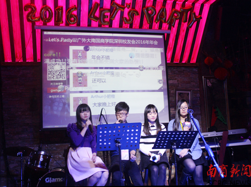 本网讯 1月9日,学校校友会深圳分会以“LET’S PARTY”为主题举行2016年会。学校党委书记、校友总会副会长黎冬及各地方校友会委员代表应邀出席了活动,108名深圳校友参加了本次年会。