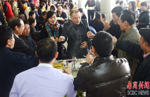 本网讯(记者 陈锴进)1月17日中午,喜庆的音乐声在饭堂三楼响起,学校领导班子成员和副科以上干部 、系(教研室)主任、学科带头人、专业负责人欢聚一堂,共贺新春。