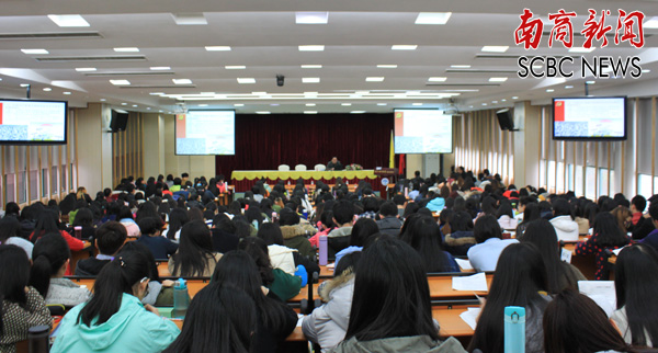 本网讯 3月17日下午,第42期入党积极分子培训班在C201正式开课。广东外语外贸大学原党委常委、副校长董小麟为309名入党积极分子主讲“中国共产党的性质和指导思想”。党委书记黎冬主持开学典礼。